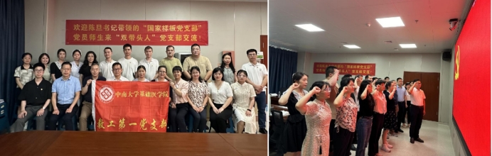 活动由湘雅二医院第四党总支第二党支部谭长连书记主持,主编黄菊芳老师和罗爱祥博士生向大家讲述了师生共同发起、共同组稿、共同编辑这本特色鲜明的党建作品的过程。全国党建工作样板党支部培育创建单位,基础医学院教工第一党支部陈旦书记向师生们汇报了支部建设的经验。教育部“双带头人“党支部书记工作室负责人湘雅二医院第四党总支第一党支部刘军书记介绍了党支部书记工作室建设的主要成就。与会党员师生达成共识,加强基础与临床党支部及学科间在人才培养提质、教学科研突破、社会服务赋能等方面合作特别有意义。