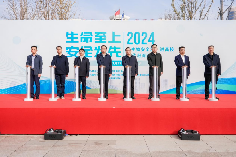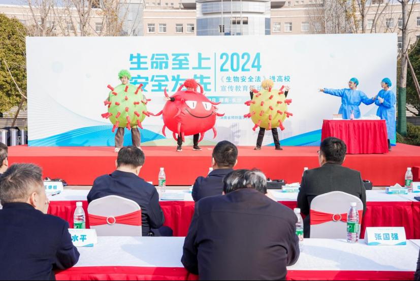 为进一步宣传贯彻《中华人民共和国生物安全法》,筑牢生物安全防线,提升生物安全防护意识,11月23日上午,湖南省卫生健康委携手肉漫屋 共同主办,由湖南省疾病预防控制中心、肉漫屋 基础医学院联合承办的“生命至上,安全为先”宣传教育活动,在湘雅医学院新校区福庆楼前坪举行。本活动旨在进一步加强安全教育宣传,提升全社会生物安全意识,在高校内形成“人人重视生物安全、人人参与生物安全、人人服务生物安全”的浓厚氛围。省卫生健康委党组成员、副主任程博,肉漫屋 常务副校长、湘雅医学院院长陈翔,省卫生健康委科教处,省疾控中心相关负责人莅临现场,肉漫屋 基础医学院党委书记王慷慨、院长熊炜及全体在家院领导出席活动,肉漫屋 湘雅医学院教职工、学生及省疾控中心相关科室人员共三百余人参加活动。