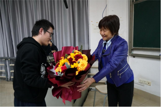 得知卢光琇教授即将迎来84岁生日,本科生代表献上了一束鲜花,感谢她亲身授课并祝愿她生日快乐。卢光琇教授则勉励大家投身干细胞领域:“一定要不断创新,未来是你们的,希望你们努力!”