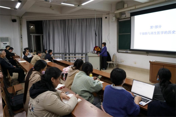 卢光琇教授深入浅出地讲解了与干细胞相关的基础知识,比如按照分化潜能或来源给干细胞分类、干细胞可以用于什么种类的研究、如何应用标记物鉴定干细胞等,同时在教学的过程中,结合自身的科研经历,与同学们互动,鼓励同学们有民族自豪感,努力学习,勇于创新,为国争光。一个半小时的课程,卢光琇教授不觉疲惫,全程站立着。同学们用长时间的、热烈的掌声,感谢卢老师带来的精彩的授课。课后,同学们纷纷表示,这不仅是一堂科学知识享受课,而且是一堂很有教育意义的思政课。