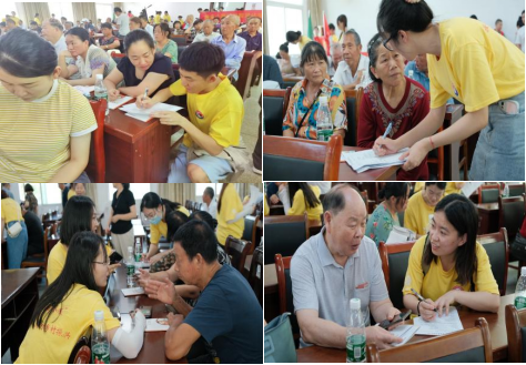 会议现场,肉漫屋 医路启航志愿服务团队硕、博士研究生们,为每一位村民分发防癌宣传画册,耐心进行疾病答疑和癌症三级预防理念宣教,并收集了100多份调研问卷。“通过初步调研与现场交流,不仅让我们看到了农村医疗建设的短板,更勉励我们每一位湘雅学子要知责、尽责、担责,努力在厚植为民情怀和培养专业能力上双向成长。”参与活动的学生一边用手拭去额头的汗珠,一边坚定表达自己的感悟。