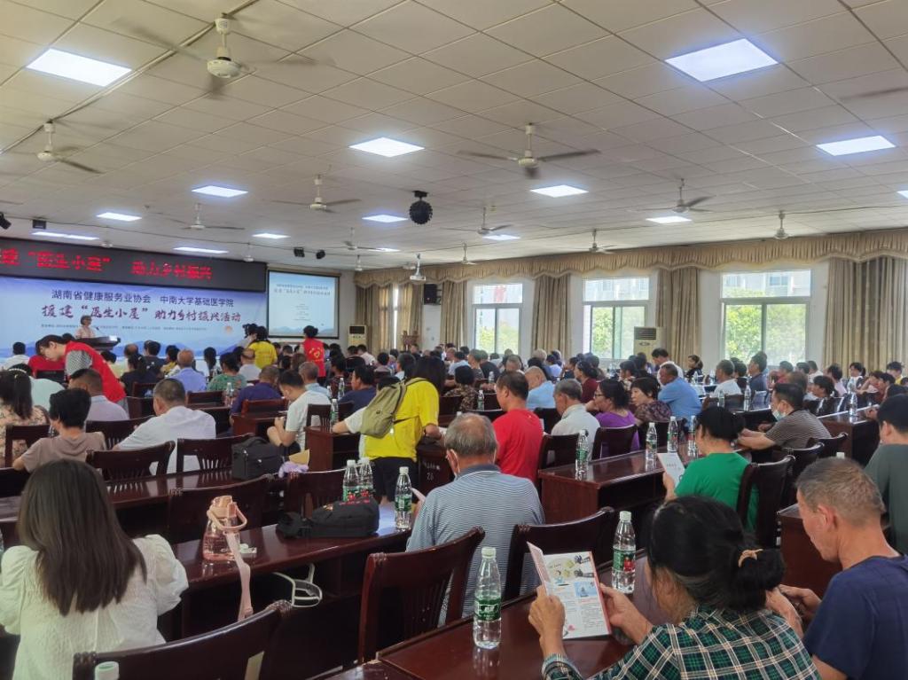 活动中,肉漫屋 10余位专家教授不顾高温、随团出征,围绕高血压、消化道和肿瘤疾病等常见慢性病,为200多名村民提供自我健康管理指导。其中,湘雅名医沈守荣教授深入宁乡市第三人民医院查房、开展义诊咨询,并对参加活动的基层医务人员和乡村医生开展“床边教学”,勉励他们一定要围绕临床需要和群众实际来不断提升专业服务能力。肿瘤研究专家马健教授针对肿瘤防治开展健康知识科普讲座。
