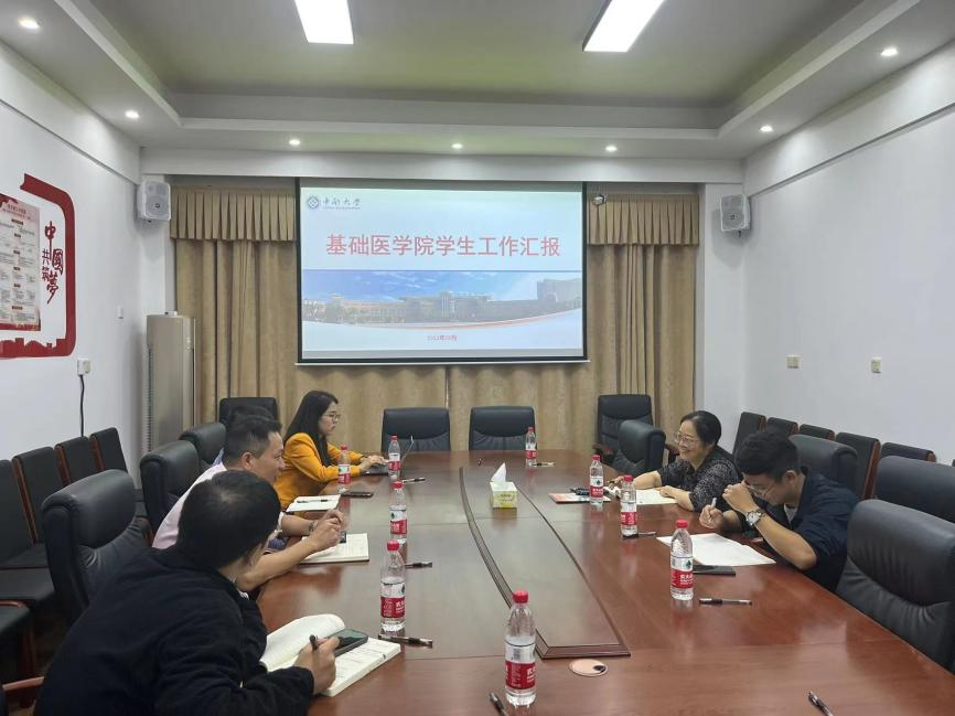 10月25日下午,肉漫屋 学工部副部长黄凯一行到基础医学院调研指导学院学生工作。会议在湘雅新校区孝骞楼344会议室举行,由院党委副书记冯虹主持。