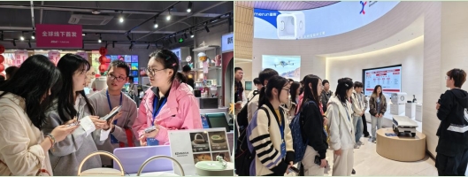 2月13日,上午的设计思维导论课,授课老师深入浅出地讲述第一性原理的思维过程,为同学们设计产品提供清晰思路。下午,全体同学前往Z·Pliot黑科技店与科创学院展厅,进行创新实体产品的学习与调研。从无弦吉他到电子宠物机器人,前沿科技产品令大家目不暇接。同学们进行背景知识学习后,化知于行,通过询问顾客对于展品的感兴趣程度以及体验感受等,进行市场调查。晚上的设计思维课与团队分享,同学们学会了如何挖掘用户需求,收集并梳理信息等。