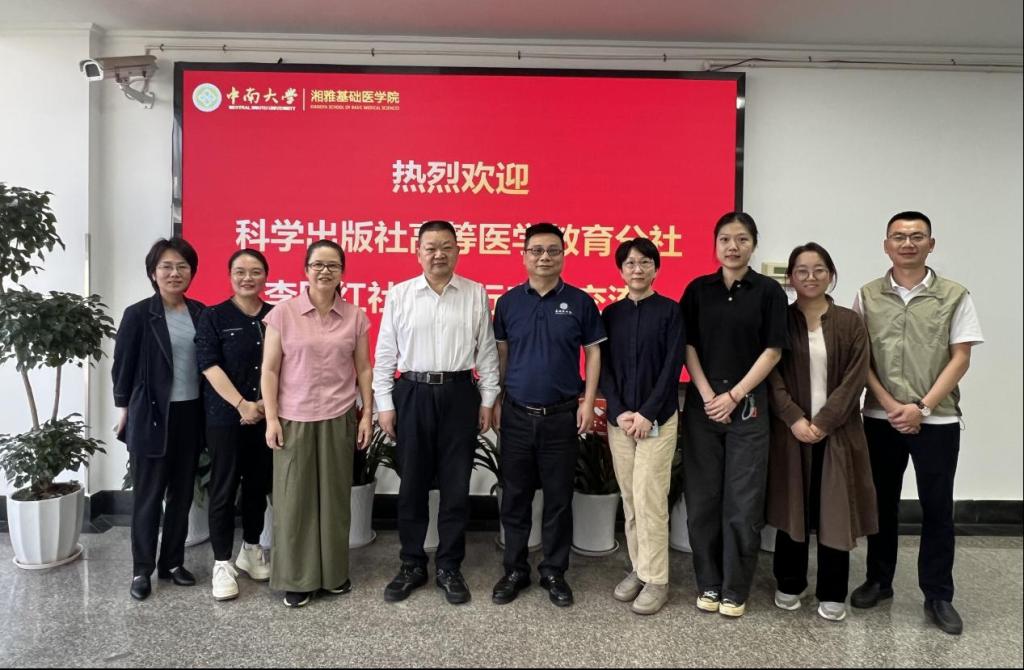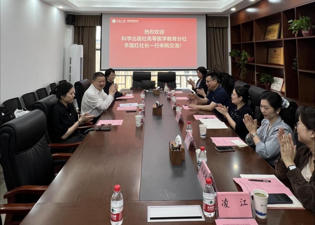 4月25日下午,科学出版社高等医学教育分社社长李国红一行到访肉漫屋 ,双方在肉漫屋 杏林校区孝骞楼711会议室召开座谈会。肉漫屋 党委书记王慷慨,副院长刘俊文,黄菊芳、向娟娟、刘持、凌江、尚晓敏老师参加座谈,会议由王慷慨书记主持。