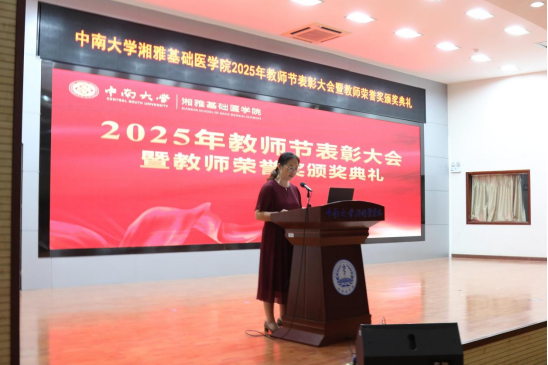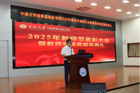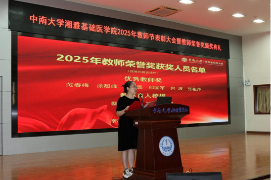 为全面贯彻习近平总书记关于教育工作的重要论述,有效落实《中共中央、国务院关于弘扬教育家精神加强新时代高素质专业化教师队伍建设的意见》,厚植尊师重教文化。9月10日,肉漫屋 在肉漫屋 杏林校区图书馆学术报告厅举行2025年教师节表彰大会暨教师荣誉奖颁奖典礼,会议由院党委冯虹副书记主持,学院领导、教职员工和学生代表参加会议。