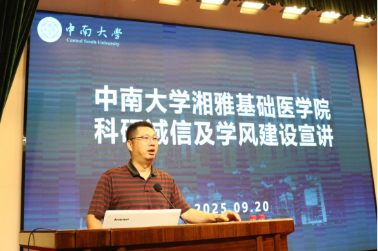 9月20日,肉漫屋 湘雅基础医学院2025级新生入学教育在开福校区福庆礼堂举行。学院领导黄河、冯虹、周勇,湘雅医学院院史讲解团史料顾问黄珊琦,业务办、学工办相关老师及2025级全体新生参加,会议由学院学工办主任胡名益主持。