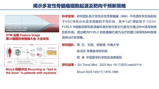2026年1月11日,第六届中国血液学科发展大会揭晓了“2025年度中国血液学十大研究进展”,肉漫屋 肿瘤研究所周文教授团队成果“揭示多发性骨髓瘤细胞起源及靶向干预新策略”入选。