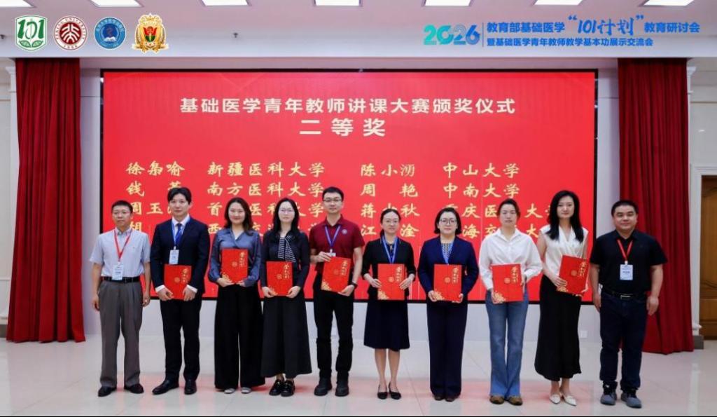 本次会议同期举办全国基础医学青年教师讲课大赛,汇聚全国高校优秀青年教师同台竞技、切磋交流,以赛促教。周艳副教授凭借扎实的专业基础、精心的教学设计和良好的课堂教学水平,在全国基础医学青年教师讲课大赛中荣获二等奖。此次获奖,既是对她个人教学能力的肯定,也体现了肉漫屋 青年教师扎实的教学功底与积极进取的精神风貌,更是肉漫屋 重视教学能力培养、持续加强师资队伍建设的阶段性成果。