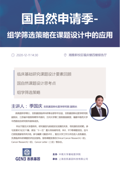 季国庆 湘雅新校区福庆楼四楼报告厅 2020年12月04日 09:33 浏览次数:
