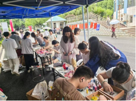 手工活动现场气氛热烈,有的毕业生用花朵和丝带精心装饰学士帽并拍照留念;在沙漏流沙画区域,同学们用彩沙制作层次丰富的流沙画封存青春瞬间;在漆扇书签区,参与者手绘漆扇书签,自用或赠师友,传递浓浓情谊。