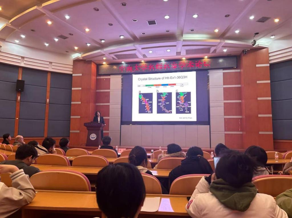 Meewhi Kim教授应用生物物理和结构生物学技术研究与神经变性相关蛋白质结构和功能,为了解这些疾病的发病机制提供重要的信息。在学术交流环节,Ilya Bezprozvanny和Meewhi Kim教授对于师生的提问给予了详尽而深入的解答,现场氛围热烈