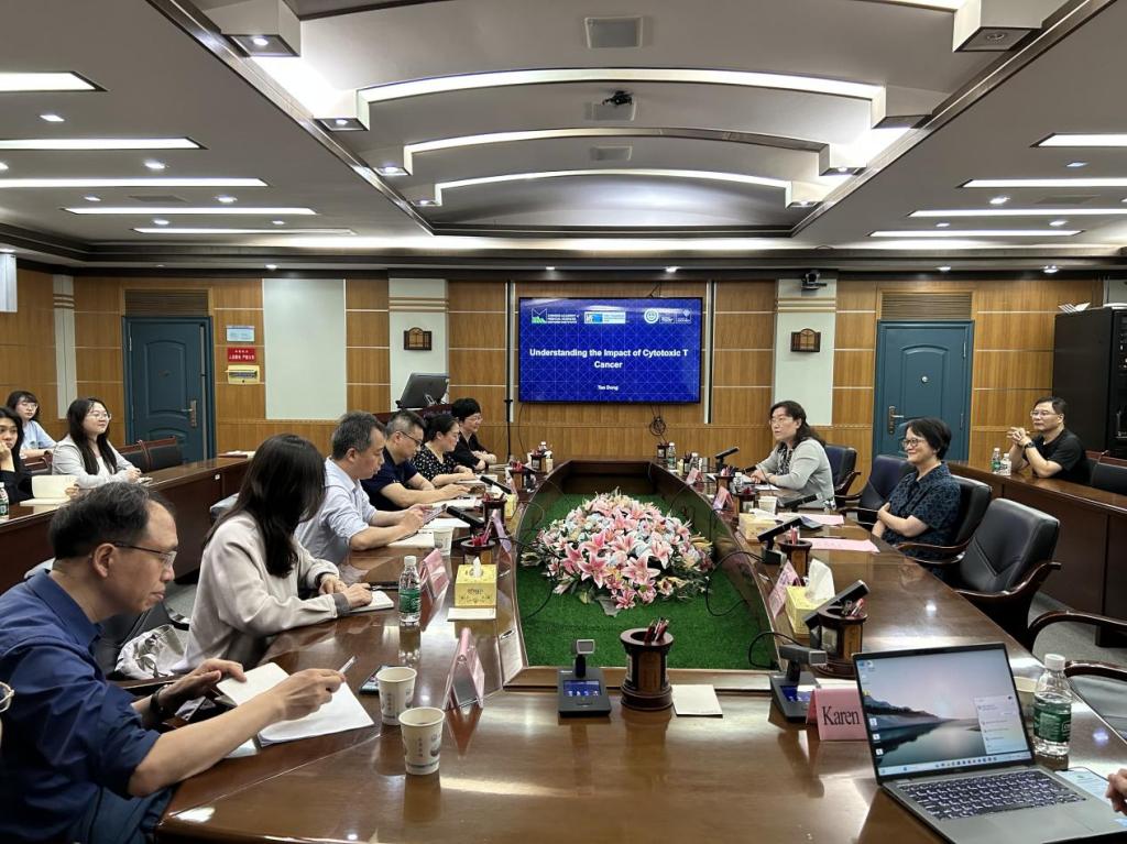 5月28日,牛津大学Ita Askonas 转化免疫学终身讲席教授、中国医学科学院牛津研究所英方所长董涛一行来院进行学术交流,双方在杏林校区孝骞楼八楼二会议室开展座谈会,院党委书记王慷慨,院长熊炜,副院长刘俊文,研究员周文、马健、谭斯品等教授及部分学生参加交流。会议由熊炜院长主持。