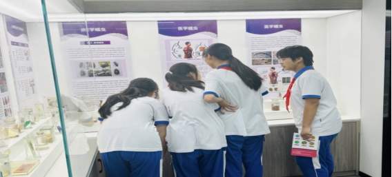 接下来,进入活动的高潮部分参观寄生虫学科普馆。在这里,同学们仿佛走进了一个全新的世界,亲眼见证了寄生虫的多种多样和复杂可怕。通过直观的展示和详细的解说,同学们对寄生虫的生物学特性、致病机制以及预防措施有了更全面的了解。他们纷纷表示,通过这次科普活动,不仅更深刻认识到健康生活方式的重要性,而且学到了很多实用的健康科学知识。