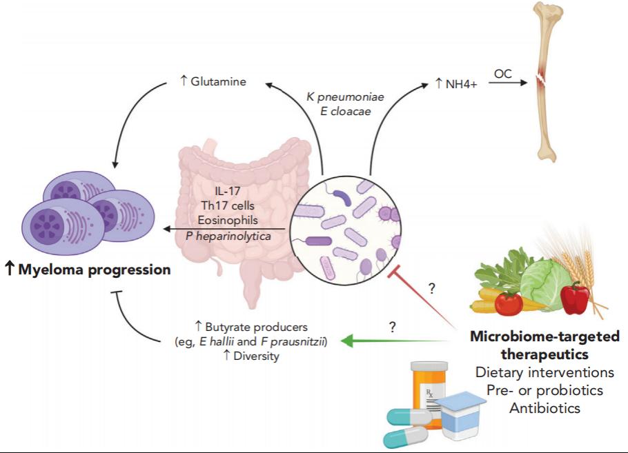 肠道氮源循环微生物诱导多发性骨髓瘤骨病发生机制图