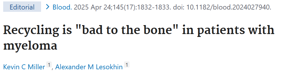 Blood杂志同期刊出了评论性文章“Recycling is "bad to the bone" in patients with myeloma(铵回收利用对多发性骨髓瘤患者骨骼有害)”。美国纪念斯隆凯特琳癌症中心Miller KC和Lesokhin AM教授评述此项工作不仅探索了预防骨髓瘤骨病的潜在治疗靶点,而且提出微生物组的复杂结构及其对健康和疾病的代谢影响领域值得深入研究。