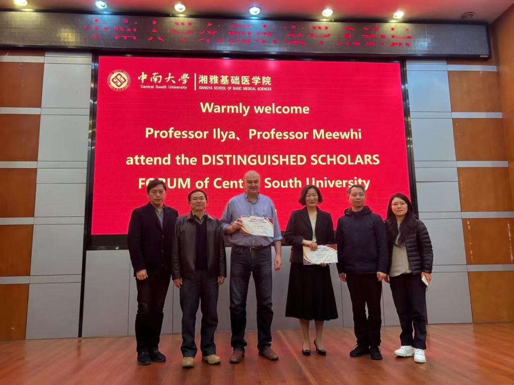 2025年1月7日至9日,俄罗斯圣彼得堡彼得大帝国立理工大学Ilya Bezprozvanny和Meewhi Kim教授访问肉漫屋 ,并于1月8日上午做客肉漫屋 名师名家学术论坛,在湘雅新校区福庆楼4楼学术报告厅分别作题为“Neuronal calcium signaling and pathogenesis of Alzheimer’s disease”和“Biophysical analysis of APP processing and biological function of Abeta peptides”的学术报告。